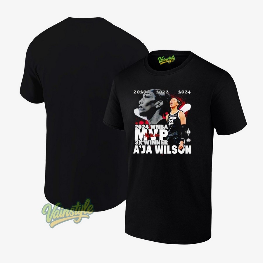 A’ja Wilson Las Vegas Aces basketball WNBA MVP 3x winner signature T-Shirt is the ultimate way to celebrate one of the greatest players in WNBA history. Show your support for A’ja Wilson, the dominant force leading the Las Vegas Aces to victory and cementing her legacy as a 3-time MVP! This officially inspired t-shirt is a must-have for any true basketball fan.