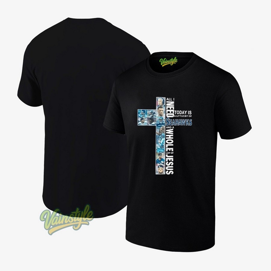 All I need today is a little bit of Seattle Seahawks and a whole lot of Jesus T-Shirt – the perfect blend of faith and football fandom for the ultimate Seahawks supporter! Show your unwavering love for your team and your devotion to your faith with this unique and comfortable tee. Whether you’re heading to Lumen Field to cheer on the Hawks, watching the game from home with friends and family, or simply running errands, this shirt is a great way to express your passions.