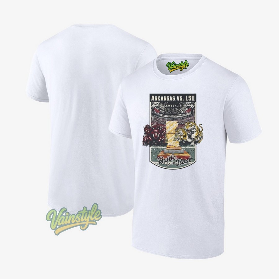 Get ready to unleash your team spirit and show your true colors! Don’t wait, Buy Arkansas Razorbacks Vs LSU Tigers Battle For The Boot Game Day 2025 T-Shirt today!