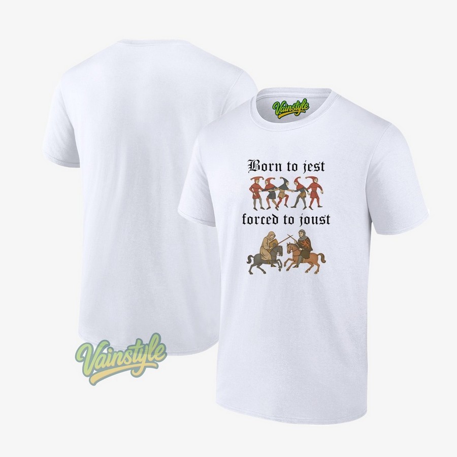 Born to jest forced to joust T-Shirt: Embrace your inner medieval mischief with this hilarious and relatable tee! Perfect for anyone who feels like they were born to crack jokes and entertain, but life has thrust them into the arena of daily responsibilities. This shirt speaks to the comedian at heart, the jester trapped in a world of mundane tasks, and the pun enthusiast who understands the delicate balance between humor and hardship.