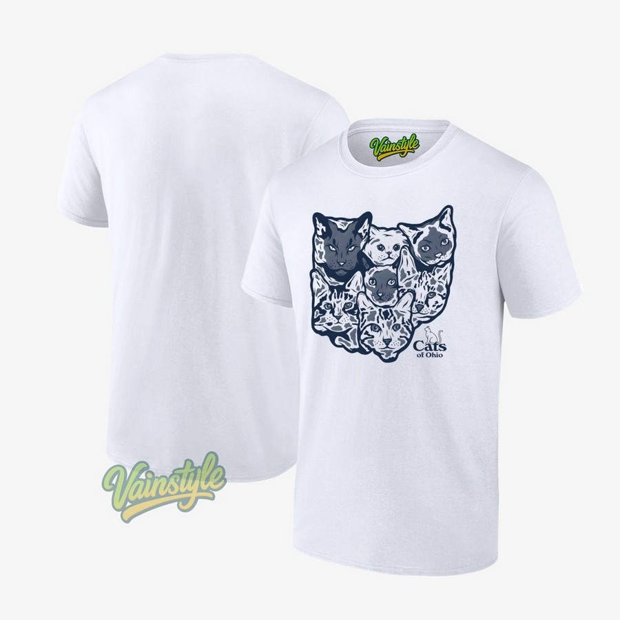 Cats Of Ohio Light Blue T-Shirt is the purr-fect way to show your love for feline friends and Buckeye State pride! This comfortable and stylish tee celebrates the adorable cats who roam the diverse landscapes of Ohio, from bustling city streets to serene countryside farms. If you’re a cat lover, an Ohio native, or simply appreciate a unique and eye-catching design, this shirt is for you.