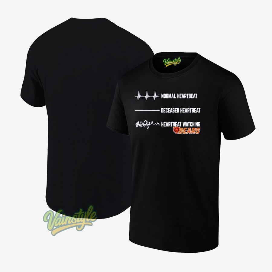 This t-shirt is more than just apparel; it’s a statement. It’s a conversation starter. It reflects the dedication and passion that only a Bears fan can truly understand. The design resonates with the shared experiences of a fanbase known for its unwavering support, even when the team’s performance sends our heart rates soaring… in both good and bad ways. The deceased heartbeat element adds a touch of humor and self-awareness, acknowledging the sometimes-painful reality of being a Bears fan. Whether you’re tailgating at Soldier Field, watching the game at your favorite sports bar, or simply relaxing at home, this t-shirt is the perfect way to express your Bear pride.
