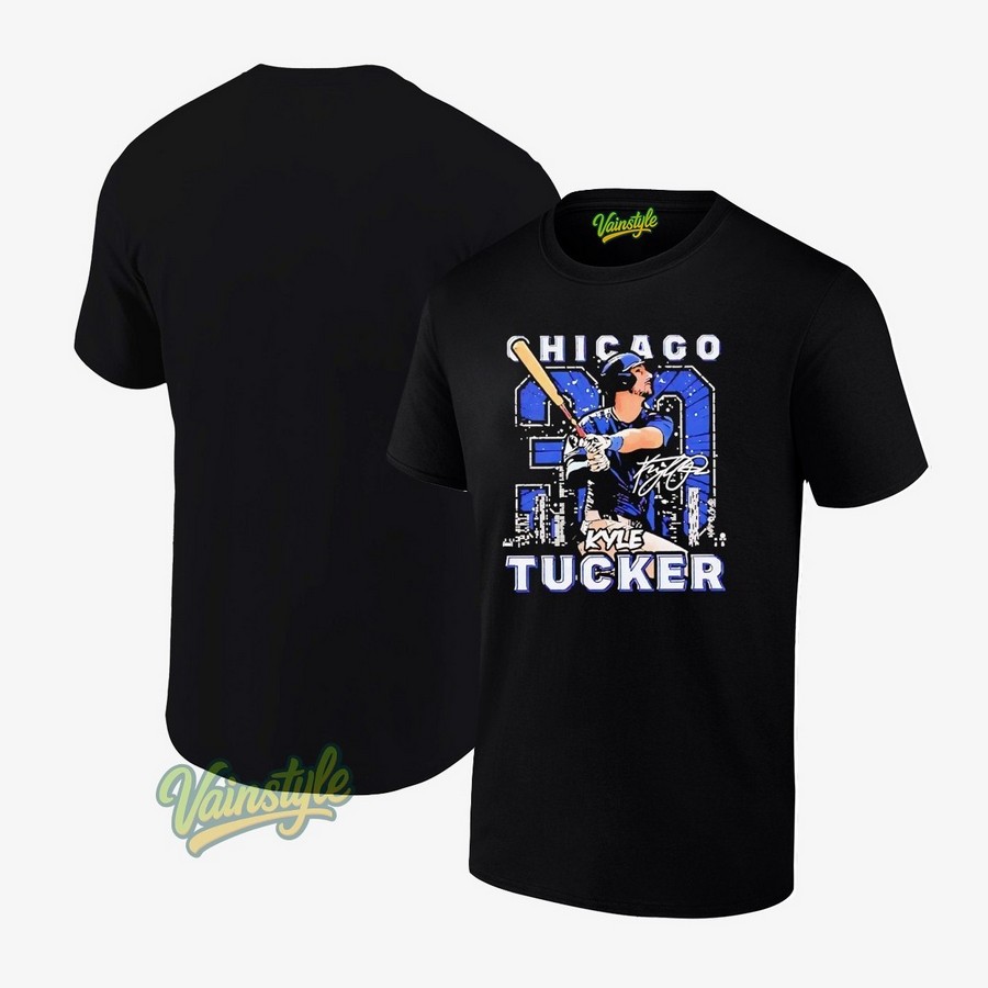 While not officially affiliated with Kyle Tucker (the Houston Astros outfielder), this design taps into the excitement surrounding young, talented players and the desire to represent your favorite city. The imagery captures the energy and spirit of Chicago baseball, even if it’s a fictional player mirroring the talent and potential of stars across the league. The silhouette of the batter against the backdrop of the Chicago skyline is a powerful visual statement, making this t-shirt a standout piece in any wardrobe.