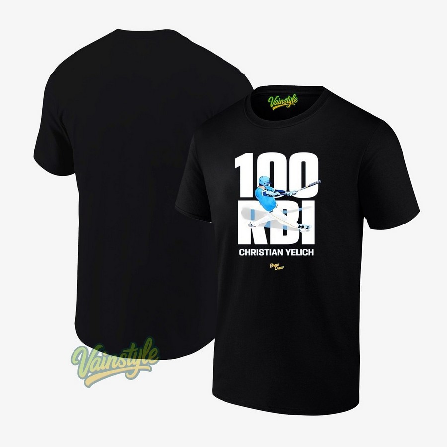 At Vainstyle.com, we understand the passion of baseball fans. That’s why we’re committed to providing high-quality, officially inspired merchandise that allows you to express your team pride in style. We believe in celebrating the moments that make baseball great, and this Christian Yelich 100 RBI shirt is a testament to that belief. It’s a must-have for any true Brewers supporter.