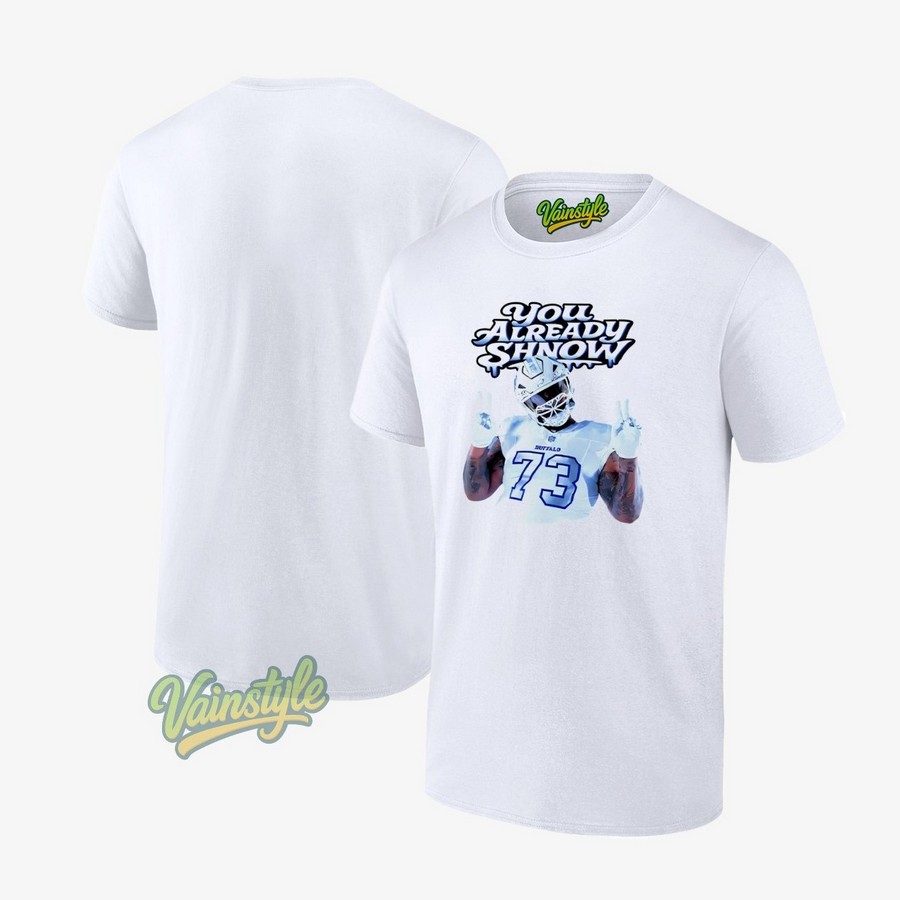 Dion Dawkins Buffalo Bills You Already Shnow T-Shirt – show your unwavering support for one of the most beloved offensive linemen in the NFL with this iconic tee. Embrace the spirit of the Buffalo Bills and Dion Dawkins’ infectious energy with this must-have apparel, celebrating the team’s relentless pursuit of victory. You Already Shnow isn’t just a catchphrase; it’s a mantra, a declaration of confidence and Bills Mafia pride.