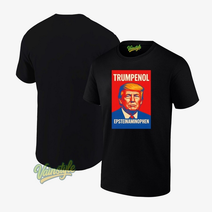 Donald Trump Trumpenol Epstein Aminophen T-Shirt is a bold statement piece designed to spark conversation and showcase a unique perspective on current events. This shirt blends elements of political commentary with a touch of dark humor, referencing familiar figures and controversial subjects that have dominated headlines. It’s more than just apparel; it’s a wearable expression of individual thought. The design is printed on high-quality, comfortable fabric, ensuring both durability and a great feel. Available in various sizes, this t-shirt is perfect for those who appreciate satire and enjoy making a statement.