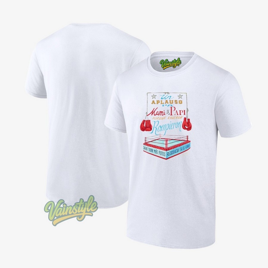 DTMF Boxing Un Aplauso PA Mami & Papi porque enverda Rompieron T-Shirt – celebrate the legacy of Latino boxing legends and the unbreakable bond of family with this unique and stylish tee. Inspired by the electrifying energy of DTMF boxing events and the heartfelt appreciation we have for our parents, this shirt is more than just apparel; it’s a statement of pride and respect. In the world of boxing, DTMF represents a raw, unfiltered passion, a reflection of the dedication and sacrifice poured into the sport. This resonates deeply with the values instilled in us by our mami and papi, who enverda rompieron – truly excelled and paved the way for us.