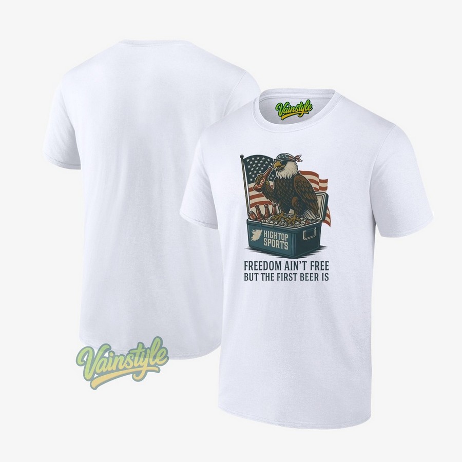 Recent trends show a strong resurgence in patriotic apparel, with consumers increasingly seeking ways to express their national pride and support for American values. The Eagle Freedom ain’t free but the first beer is USA flag T-Shirt aligns perfectly with this trend, offering a unique and stylish way to showcase your love for the USA. It’s a conversation starter, a symbol of solidarity, and a comfortable way to express your beliefs.