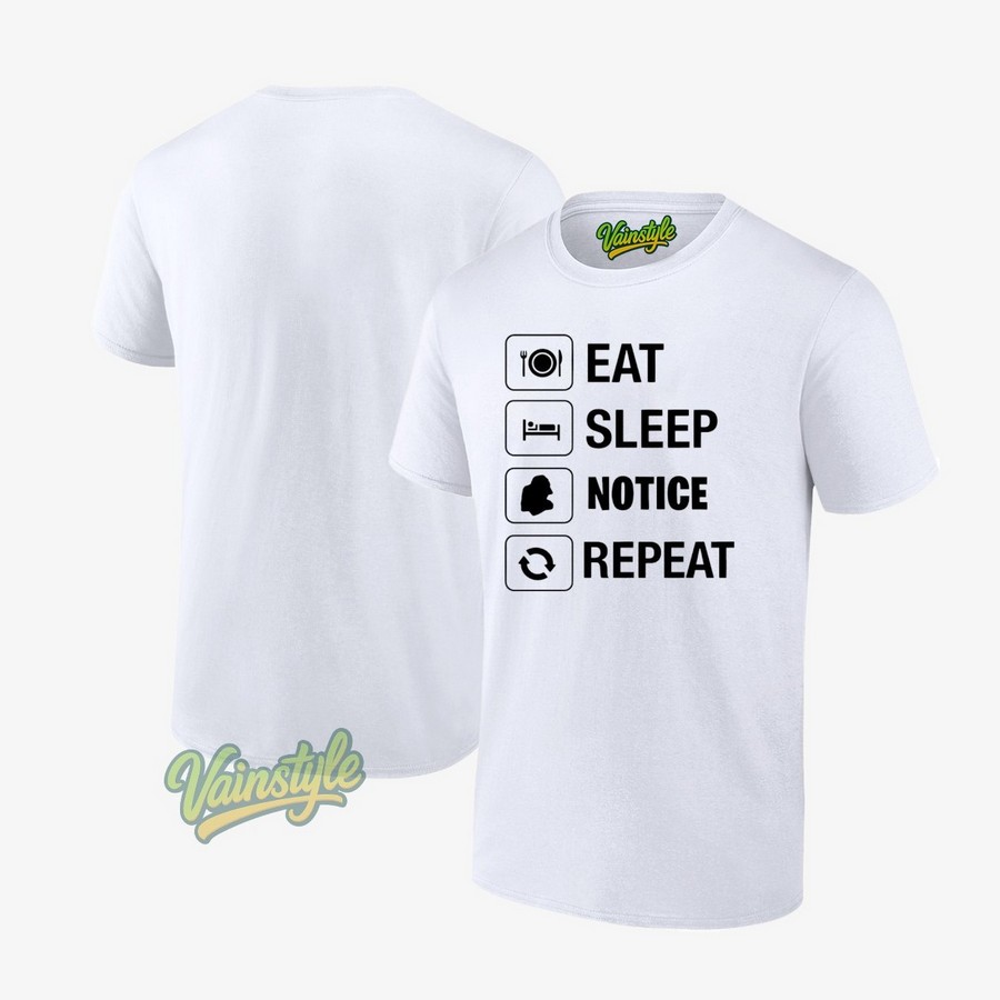 Beyond its symbolic meaning, Eat Sleep Notice Repeat T-Shirt is also incredibly comfortable and stylish. Made from high-quality, breathable cotton, it’s perfect for everyday wear. It’s available in a range of sizes to ensure a comfortable fit for everyone. The design is printed with durable, fade-resistant inks, ensuring that your message remains clear and vibrant for years to come. At Vainstyle.com, we are committed to providing quality and style, and we have designed this shirt with both in mind.