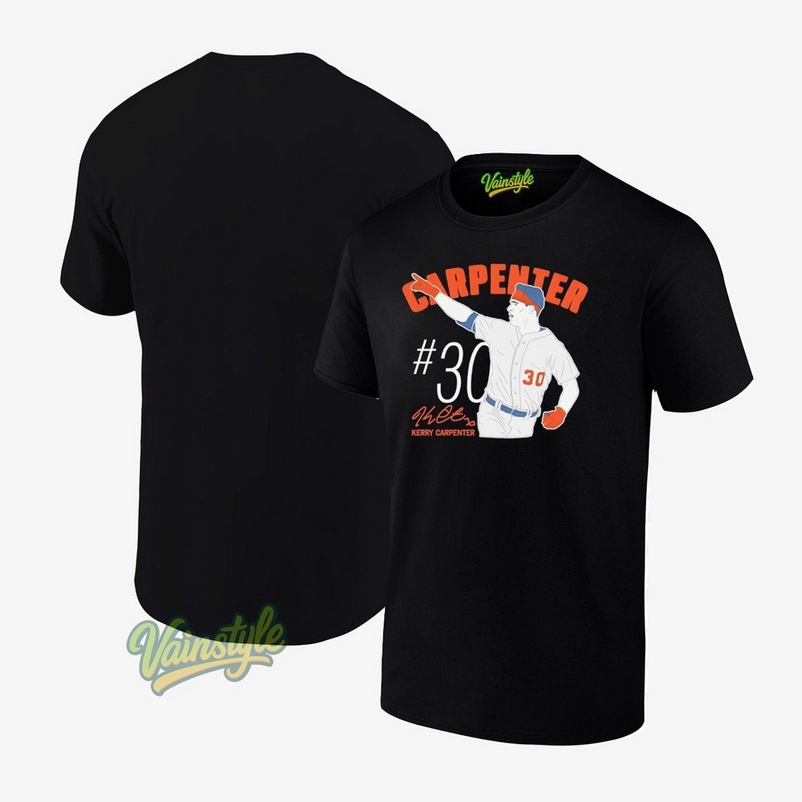 Kerry Carpenter has quickly become a fan favorite in Detroit, known for his powerful swing and clutch hits. He embodies the spirit of the Tigers, showcasing dedication and a promising future. This t-shirt celebrates his contribution to the team and allows you to connect with the excitement surrounding his burgeoning career. As Carpenter continues to make his mark on the league, this shirt will be a timeless piece in your Tigers wardrobe. His performance and growing popularity make this a must-have for any true Detroit baseball enthusiast.