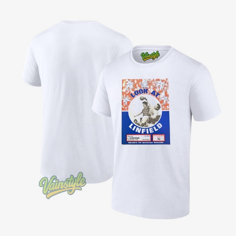 Linfield And Glentoran Look At Linfield Ireland’s Top Match-Day Magazine Vintage T-Shirt is the perfect way to celebrate the rich history and enduring rivalry of Northern Irish football. This unique tee captures the essence of match day excitement, harking back to a golden era of the sport with a design inspired by vintage match-day magazines. It’s a must-have for any dedicated fan of Linfield or Glentoran, or anyone who appreciates the cultural significance of Irish football.