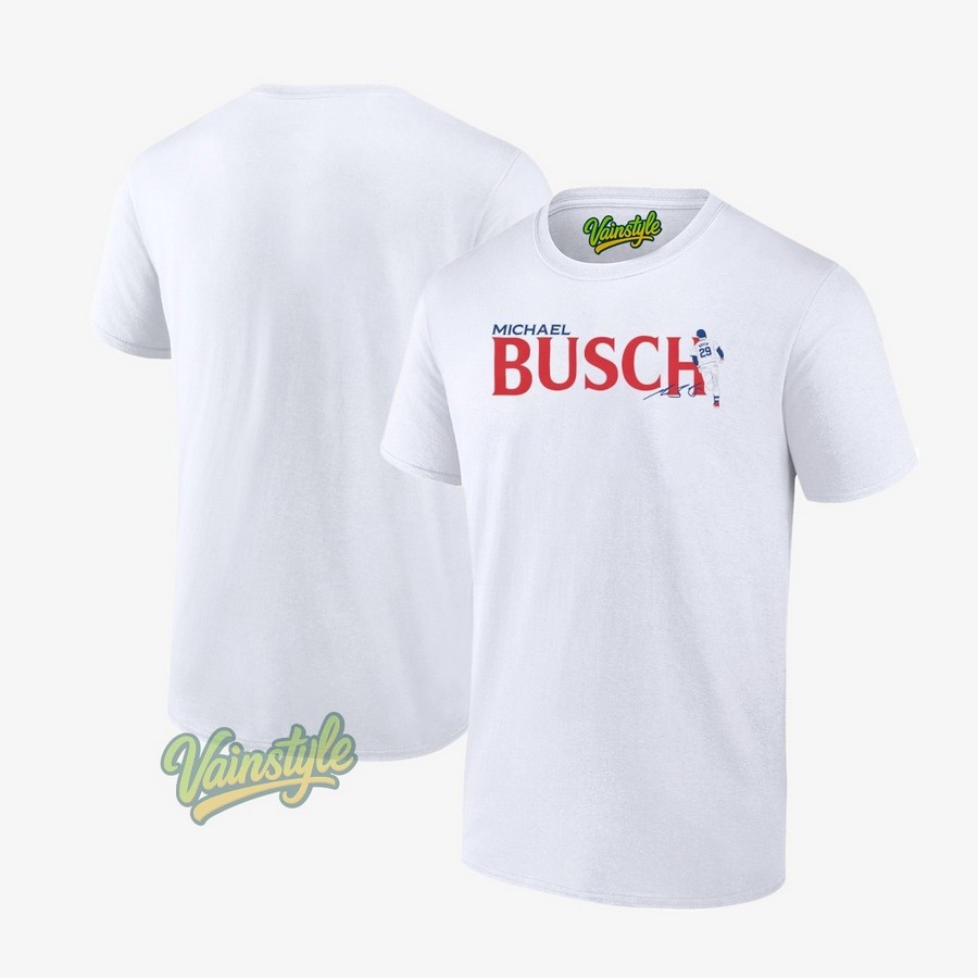 We at Vainstyle.com are committed to providing fans with authentic and high-quality MLB merchandise. This Michael Busch signature t-shirt is no exception. We understand the importance of representing your team and favorite players with pride, which is why we use only the best materials and printing techniques to ensure a durable and vibrant product. We offer a variety of sizes to ensure a perfect fit for every fan, and we are confident that you will be satisfied with the quality and design of this officially licensed t-shirt.