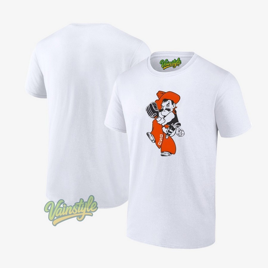 Oklahoma State Cowboys Baseball Mascot Logo T-Shirt – Show your unwavering support for the Oklahoma State Cowboys baseball team with this officially licensed, premium quality tee! This shirt proudly displays the iconic Cowboys mascot, adding a touch of spirited fun to your game day attire or everyday wear. Perfect for students, alumni, and die-hard fans alike, this t-shirt is a must-have addition to any Cowboys wardrobe.