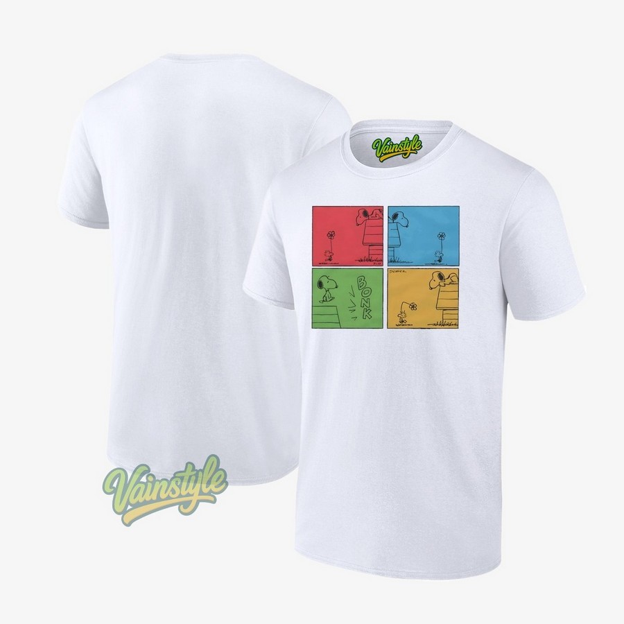 At Vainstyle.com, we pride ourselves on offering unique and high-quality apparel that allows you to express your individuality. This Peanuts Snoopy And Woodstock Panels T-Shirt is a testament to that commitment. We believe in bringing you designs that are both stylish and meaningful, reflecting your passions and interests. This shirt is a perfect way to showcase your love for timeless characters and classic comic art.