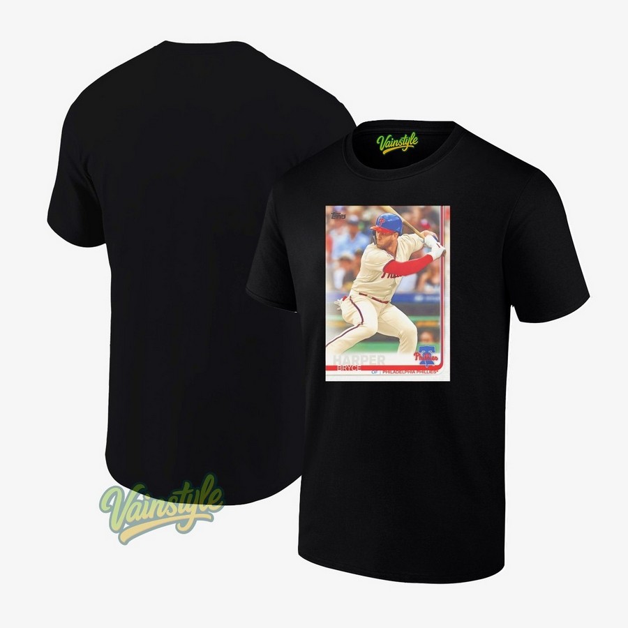 Philadelphia Phillies Bryce Harper Baseball Card Player Mlb T-Shirt is a must-have for any die-hard Phillies fan and a perfect way to celebrate one of the game’s biggest stars. Show your unwavering support for Bryce Harper and the Fightin’ Phils with this stylish and comfortable tee. Featuring a unique design that blends the iconic imagery of baseball cards with the power and charisma of Bryce Harper, this shirt is a grand slam for your wardrobe.