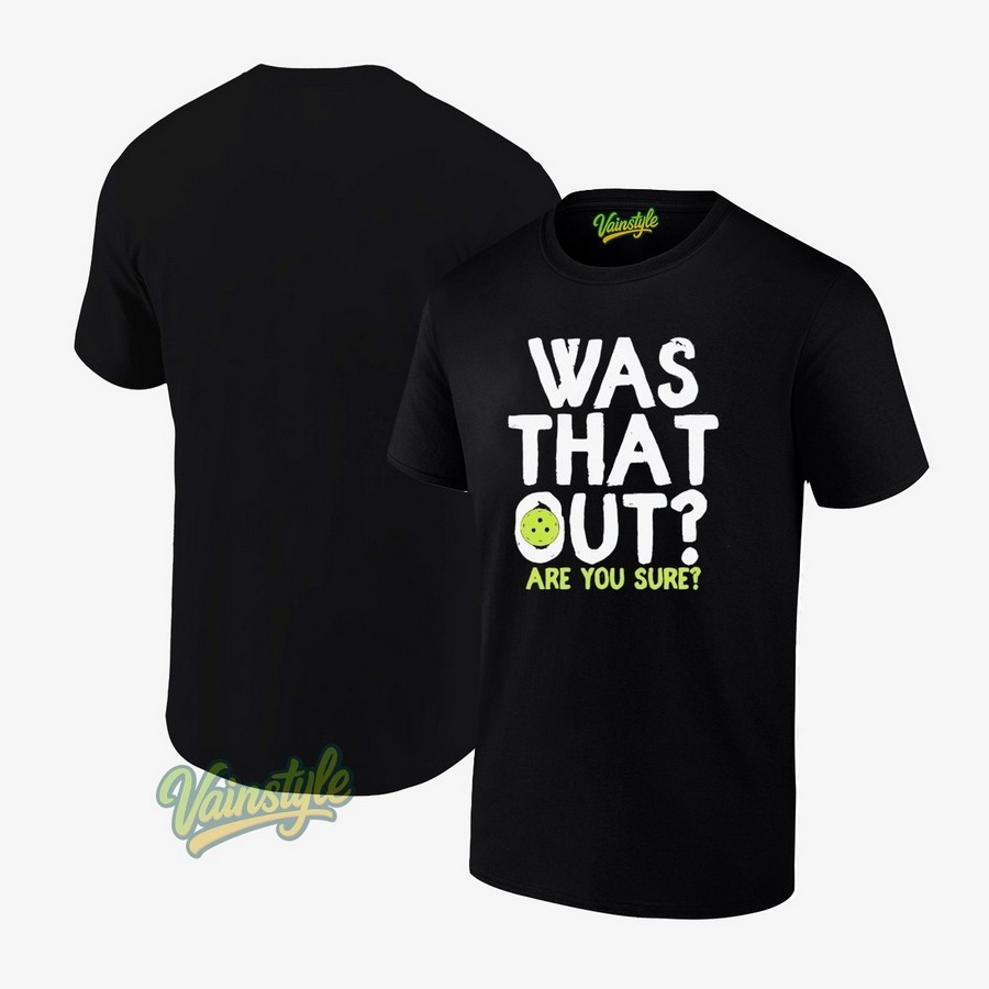 Pickleball Was That Out Are You Sure T-Shirt – the perfect apparel for the fiercely competitive pickleball player with a healthy dose of playful skepticism! Are you tired of questionable line calls during your matches? Do you find yourself constantly questioning your opponent’s vision (or integrity)? Then this shirt is for you. It’s a lighthearted way to express your inner pickleball warrior and spark some fun banter on and off the court.