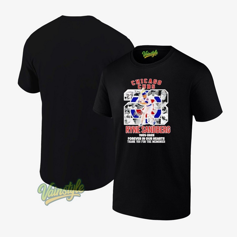 Ryne Sandberg Chicago Cubs 1959 2025 forever in our hearts thank you for the memories signature T-Shirt is the perfect way to honor a true Chicago Cubs legend. Show your unwavering support and appreciation for Ryne Sandberg, affectionately known as Ryno, with this commemorative tee. This shirt isn’t just apparel; it’s a tribute to a career that spanned generations of Cubs fans and etched Sandberg’s name into the annals of baseball history.