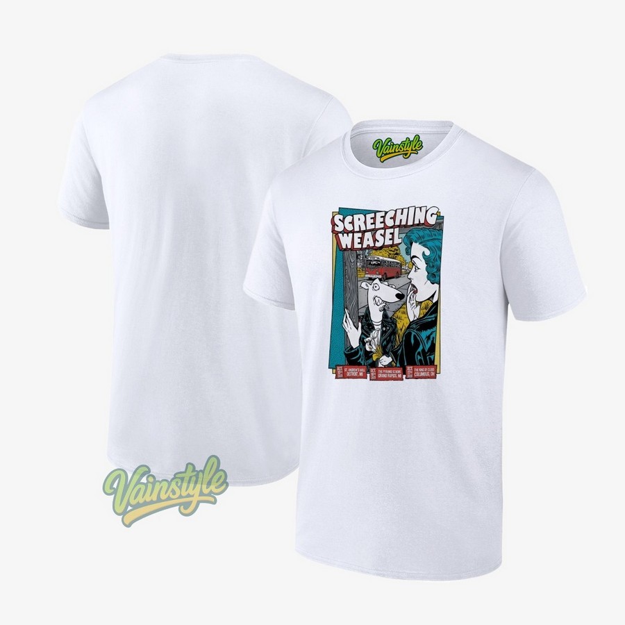 Don’t miss out on owning a piece of punk rock history. This limited-edition t-shirt won’t be around forever. Commemorate the epic Midwest Tour of 2025 and show your undying support for Screeching Weasel. Get yours now and wear it with pride! Don’t wait, grab yours today! Buy Screeching Weasel Midwest Tour 2025 Poster T-Shirt now!