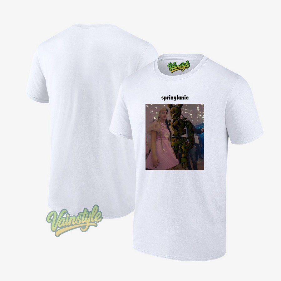 Springlanie Melanie Martinez and Springtrap Five Nights at Freddy’s T-Shirt – the ultimate crossover tee for fans of dark pop and animatronic horror! This unique design blends the whimsical world of Melanie Martinez’s Cry Baby aesthetic with the terrifying presence of Springtrap from the Five Nights at Freddy’s franchise, creating a truly eye-catching and conversation-starting piece.