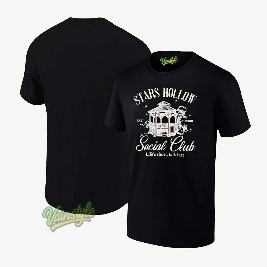 Stars hollow social club life’s short talk fast est 2000 T-Shirt is a must-have for any die-hard fan of a certain fast-talking, coffee-loving mother-daughter duo and their quirky small town. Embrace the spirit of Stars Hollow, where community is everything and life moves at the speed of a Gilmores’ conversation, with this comfortable and stylish tee. This shirt isn’t just clothing; it’s a statement. It’s a signal to fellow fans that you understand the importance of Friday night dinners, quirky town meetings, and the unyielding power of Lorelai’s wit and Rory’s ambition.
