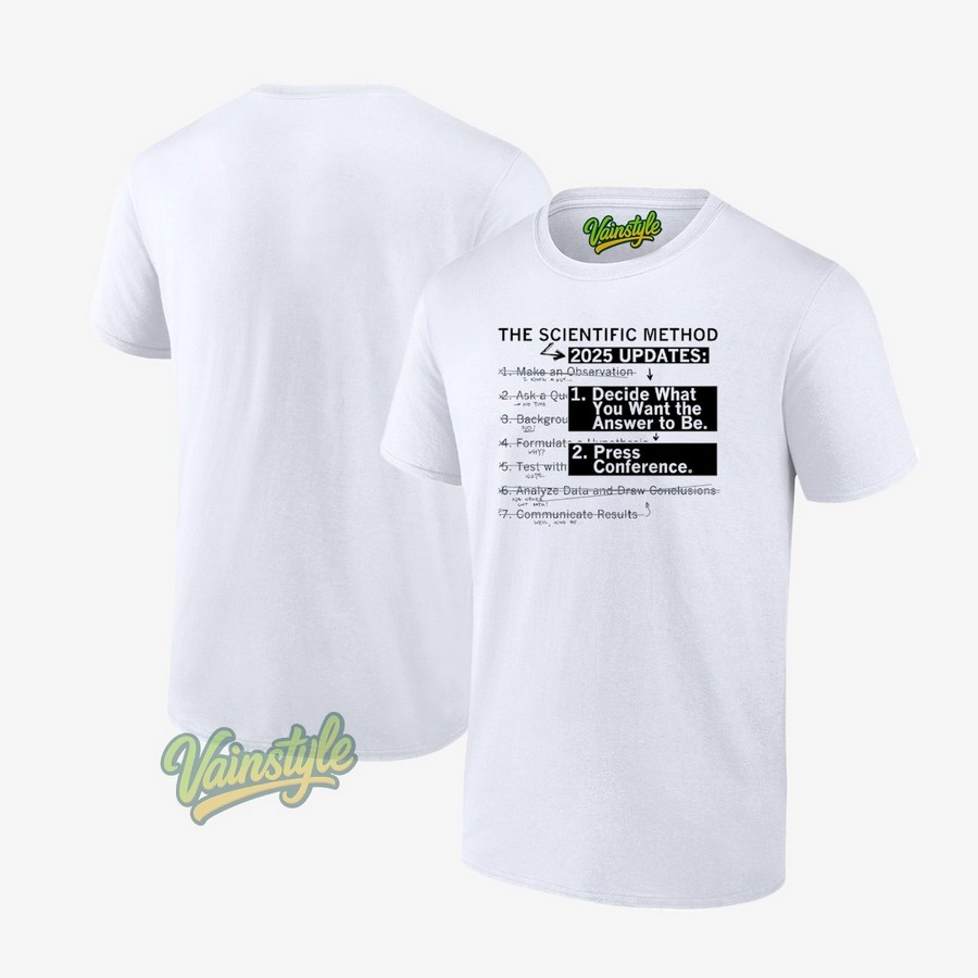 The Scientific Method 2025 Updates Decide What You Want The Answer To Be Press Conference T-Shirt is the perfect conversation starter for anyone who’s noticed a certain… flexibility… in the application of science lately. This isn’t just a shirt; it’s a statement. It’s a wry commentary on the evolving landscape of research, where pre-prints dominate headlines and meta-analyses sometimes seem to confirm pre-existing biases rather than illuminating objective truth. It’s for those who appreciate a healthy dose of skepticism in the face of increasingly politicized scientific pronouncements.