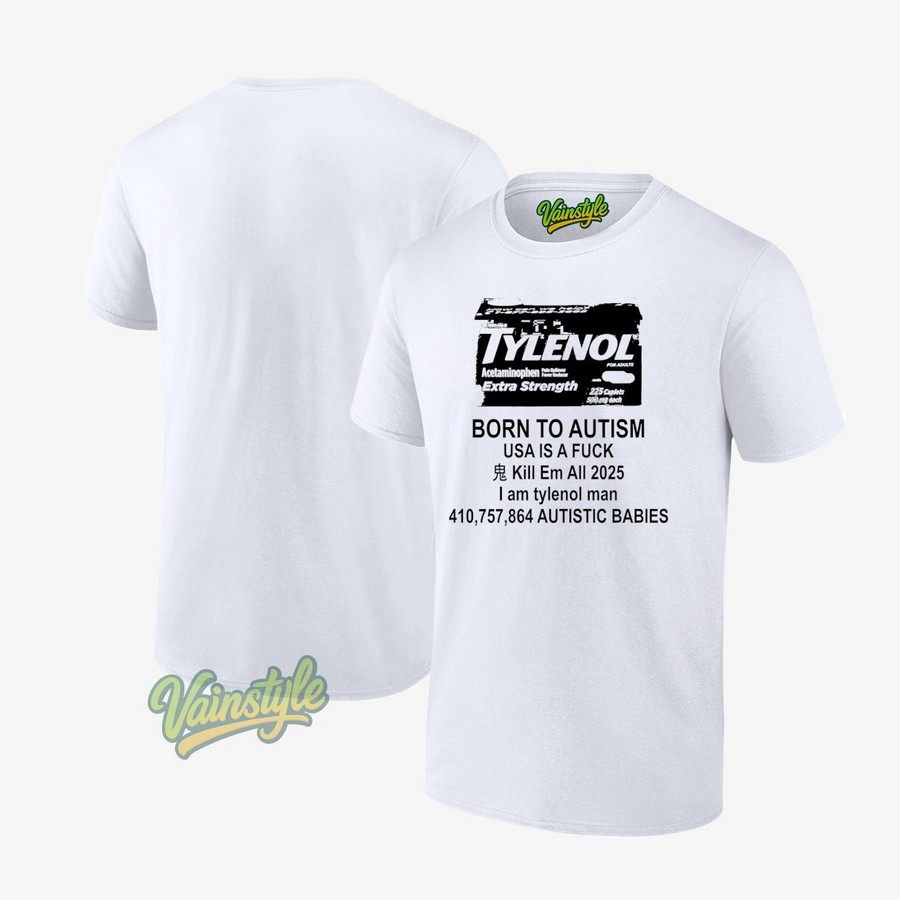If you’re looking for a shirt that’s sure to turn heads and spark conversations, then look no further. This is the perfect choice for those who appreciate bold, edgy, and unconventional designs. Don’t miss out on the opportunity to own this unique piece of wearable art. Express yourself with confidence and make a statement that’s all your own. Don’t wait, Buy Tylenol for adults acetaminophen extra strength born to autism USA is a fck kill em all 2025 T-Shirt today and let your clothing do the talking.