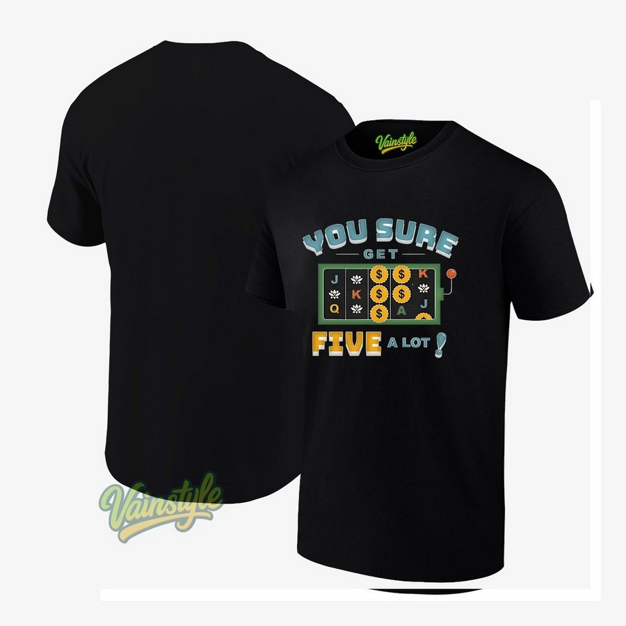 Vainstyle.com is proud to offer this exclusive Vegas Matt You Sure Get Five A Lot T-Shirt as part of our collection of unique and expressive apparel. We are committed to providing high-quality products that allow you to showcase your personality and connect with the things you love. We source only the best materials and use state-of-the-art printing techniques to ensure that your shirt looks great and lasts long.